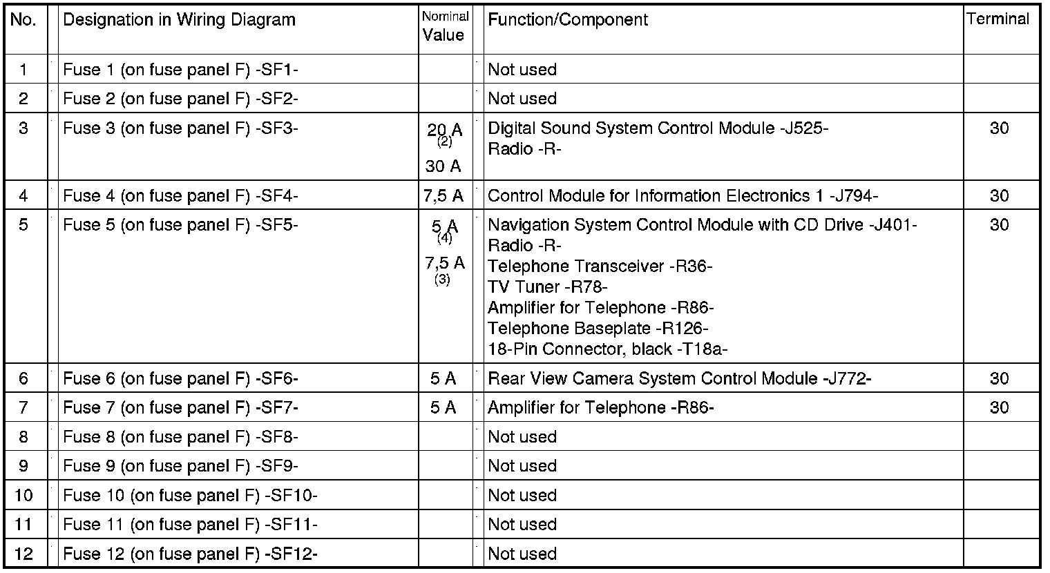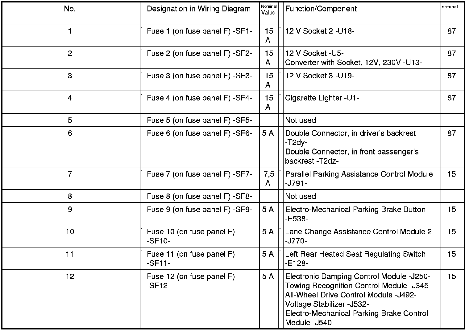 Fuses in Fuse Carrier ST5 on Fuse Panel F -SF- (black)