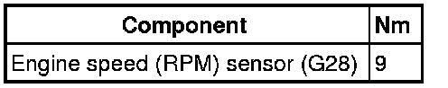 - Remove the bolt - 1 - and the Engine Speed (RPM) Sensor (G28)