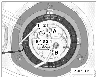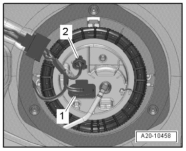 • The electric wires for fuel level sensor 2 are routed to the fuel pump locking flange inside the fuel tank.