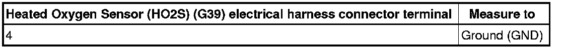 - Using a multimeter, check the Heated Oxygen Sensor (HO2S) (G39) electrical harness connector terminal 4 to Ground (GND) for voltage.