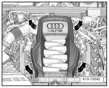 - Remove the engine cover - arrows -.