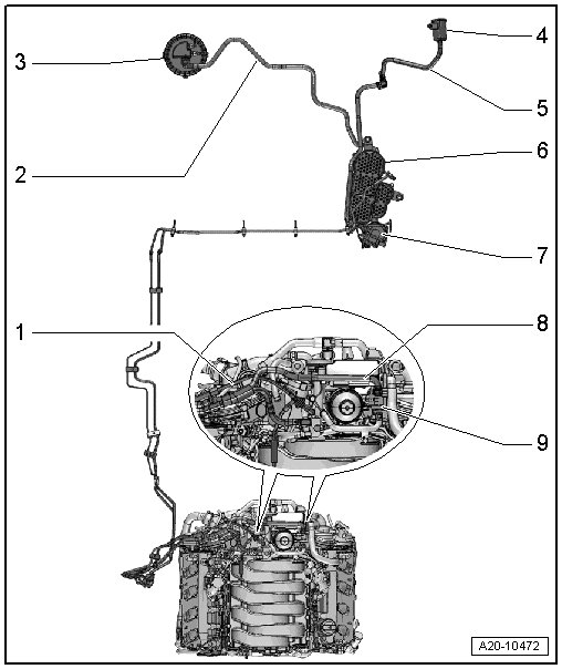 • From the fuel tank locking flange to the Evaporative Emission (EVAP) canister