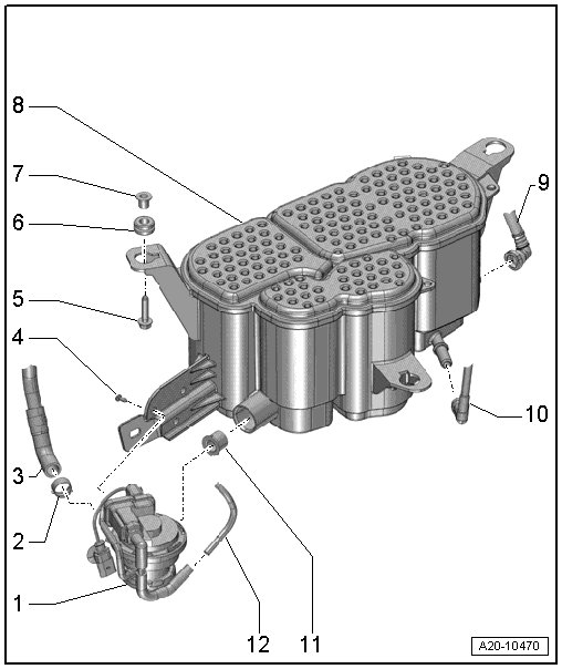 • Component location: On the EVAP canister under the bottom of the luggage compartment.