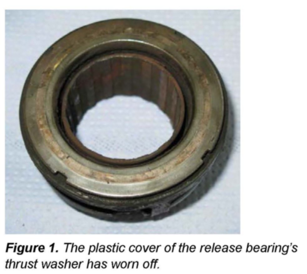 Workshop finding 2: Because the release bearing is worn or the release bearing presses against the release lever (Figures 1 and 2), the mechanical ratio of the clutch mechanism increases. This causes hydraulic ratio to increase too much, which leads to the additional pressure point.