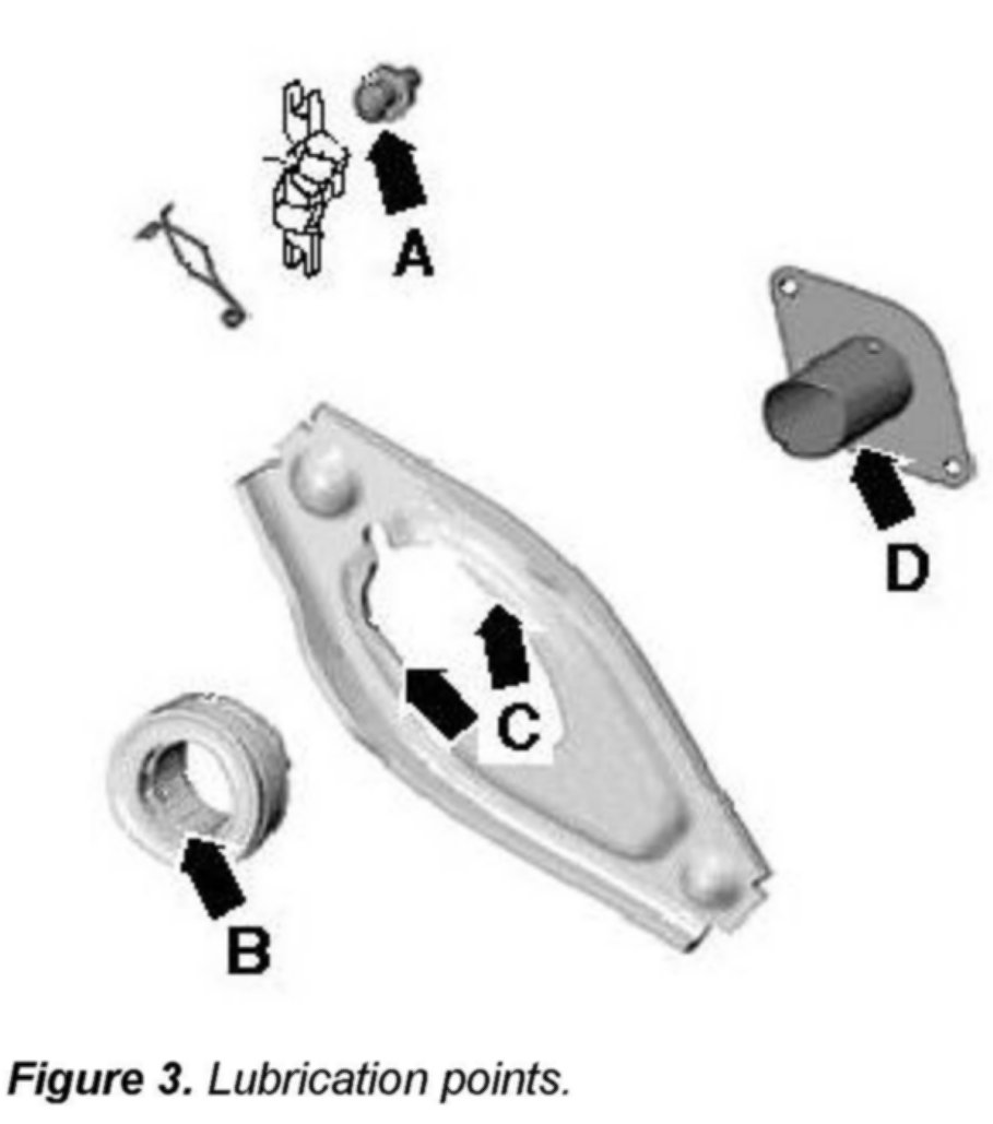 c. Lubricate the points B, C and D using only solid lubricant G 000 150.