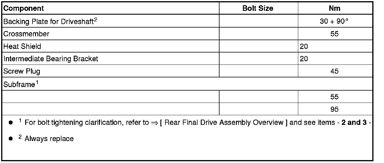 Driveshaft to Rear Final Drive - Tightening Specification and Sequence