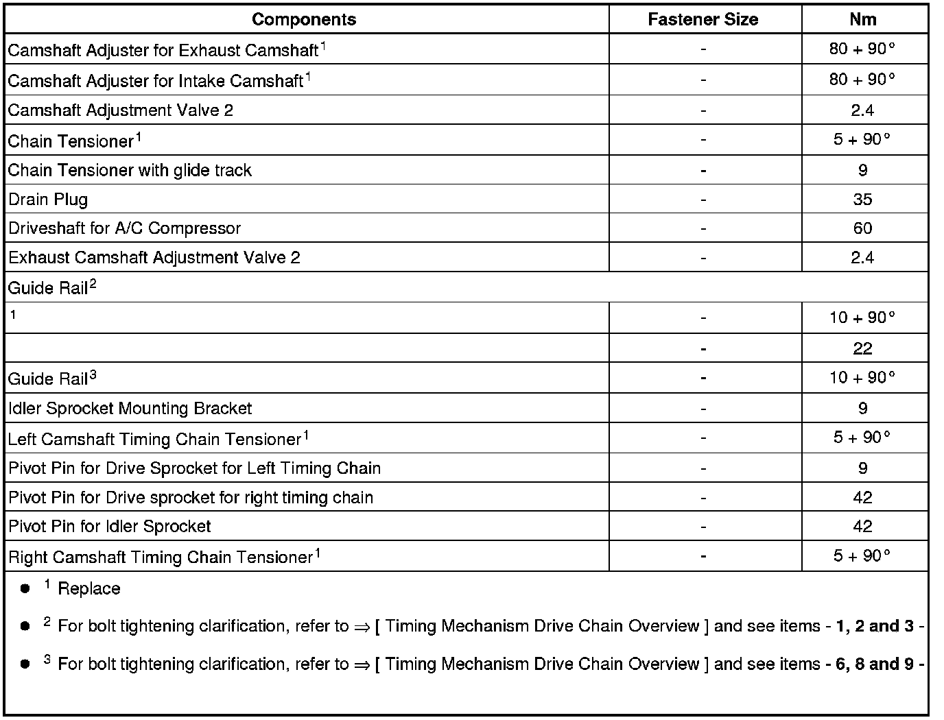 Right Timing Chain Cover, Tightening Specifications and Sequence