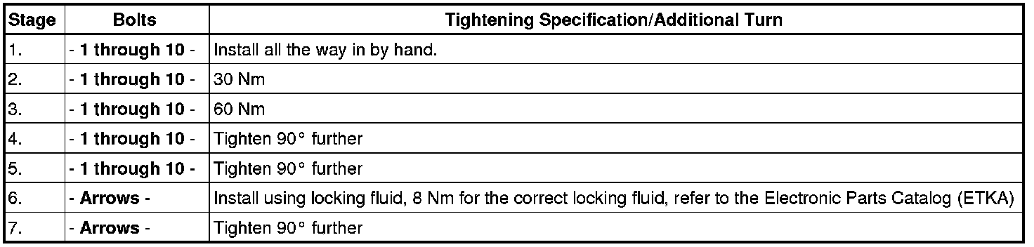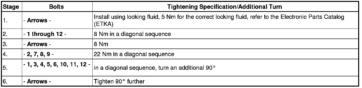 - Tighten the bolts - 1 to 6 - in diagonal sequence to 22 Nm.