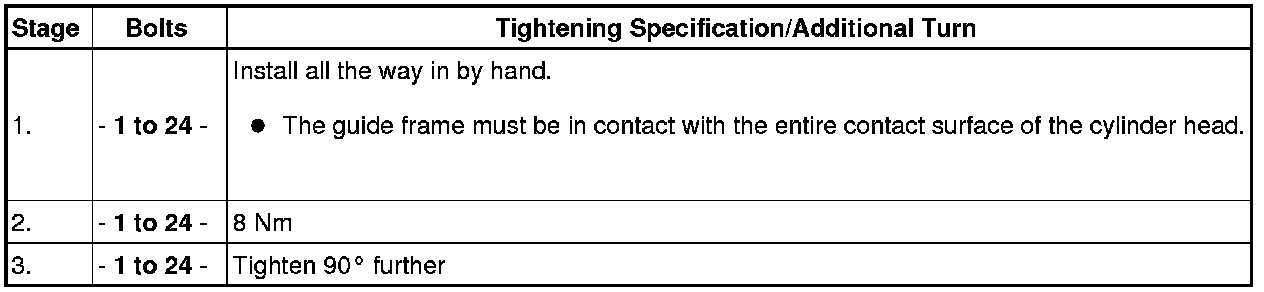 Camshaft Guide Frame Tightening Specifications and Sequence