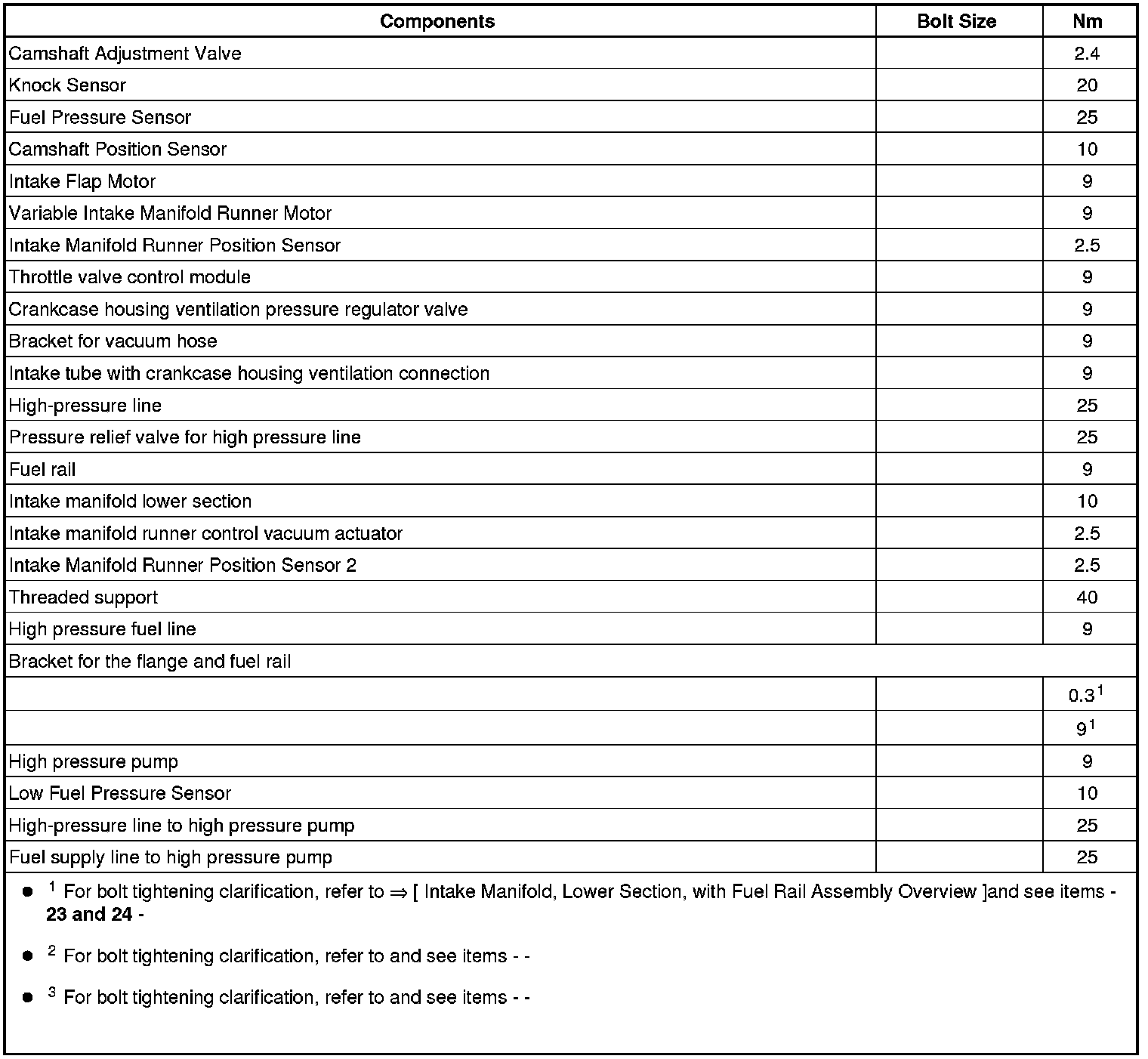 - Tighten the bolts - arrows - on the intake manifold lower section diagonally and in steps.