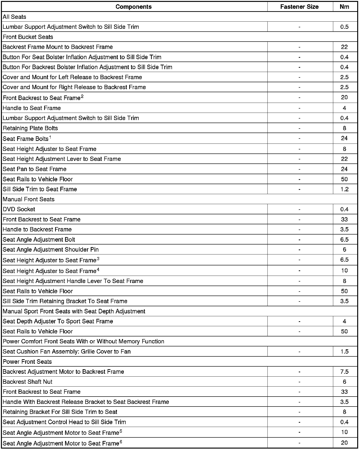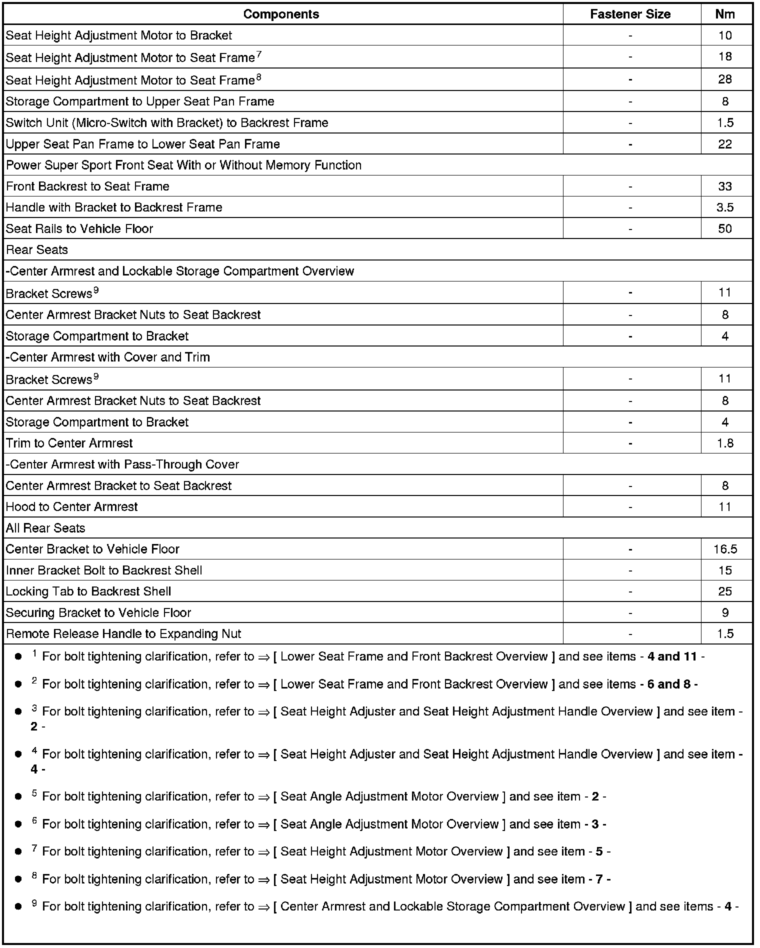 Fastener Tightening Specifications