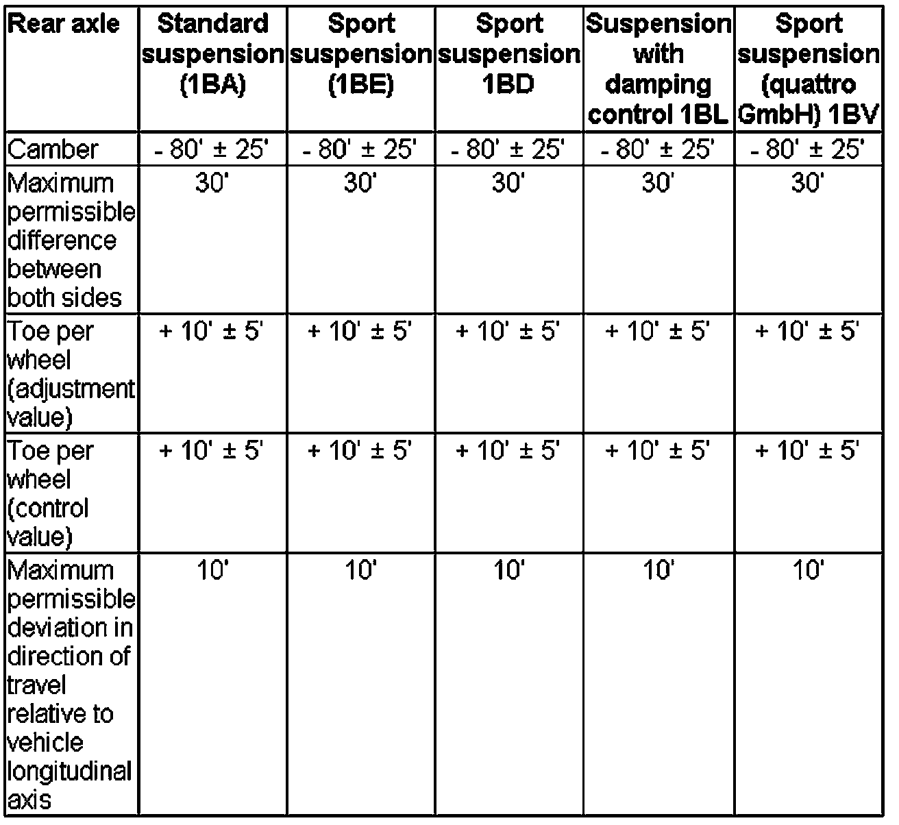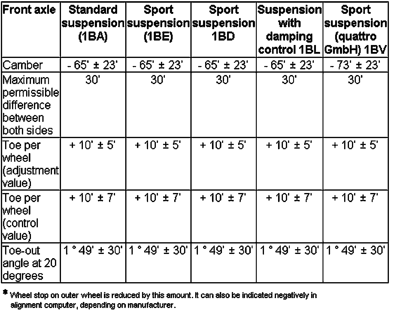 Always measure wheel alignment using VW/Audi approved wheel alignment equipment.