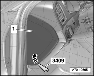 - Pry the instrument panel side cover - 1 - up using the (3409) - arrow - and remove it.