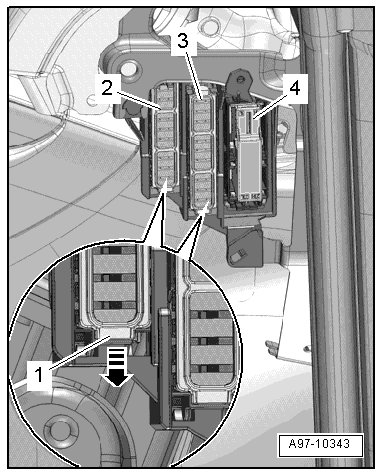 - Release retaining clips - 1 - in the - direction of the arrow - and press the fuse panels - 2 - and - 3 - back and out of the fuse panel D.