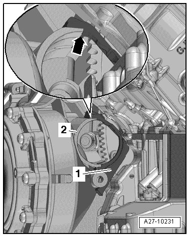 - Disconnect the electrical connector - 2 - on the right electrohydraulic engine mount solenoid valve (N145) and free it up.