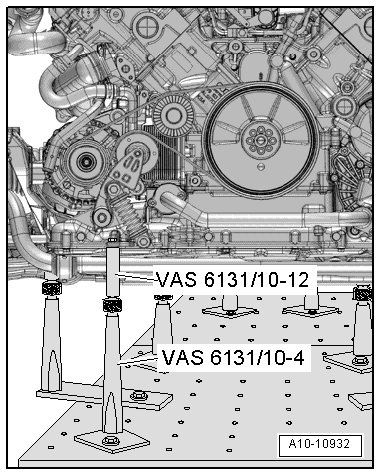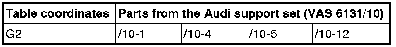 - Equip the scissor lift table (VAS 6131 A) with the Audi support set (VAS 6131/10) as follows: