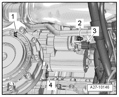 - Free up the wiring harness on the retaining plate - 3 - on the right engine mount.