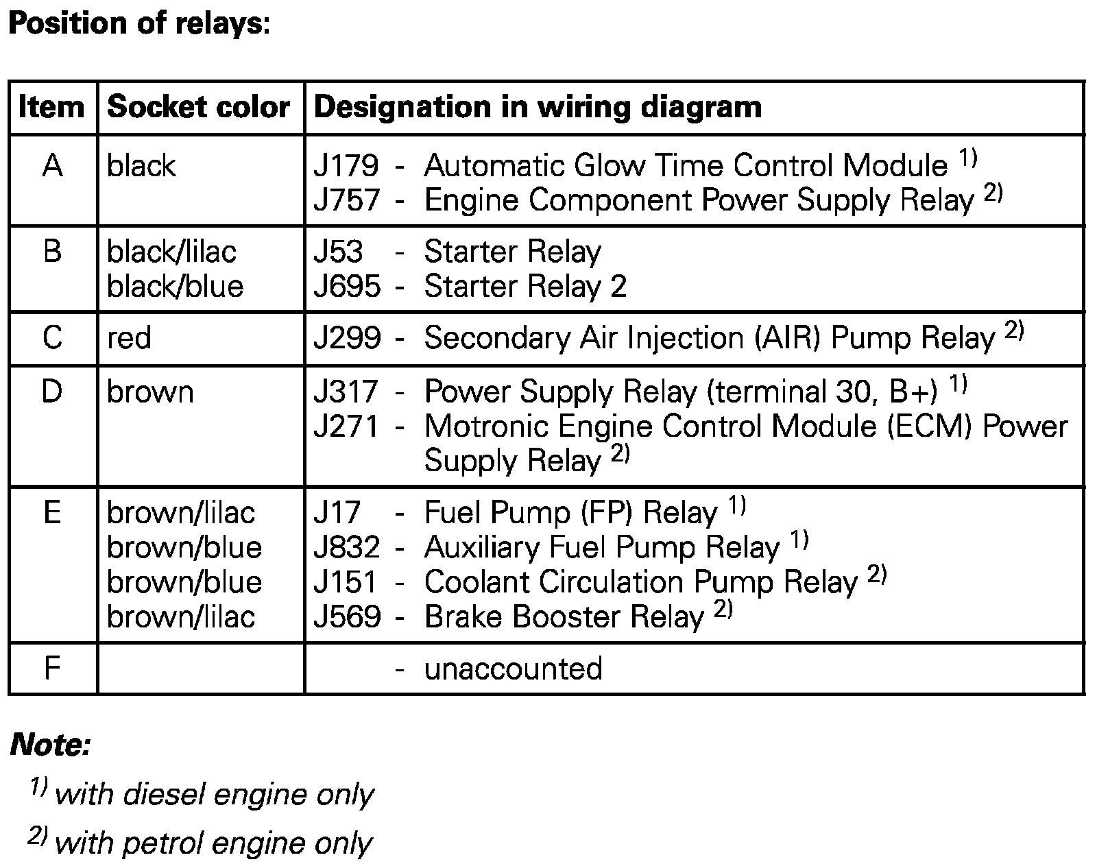 Position Of Relays: