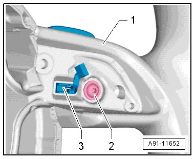 - Remove the screw - 2 - from the steering wheel - 1 - and remove the Tiptronic switch - 3 - with its connecting wire.