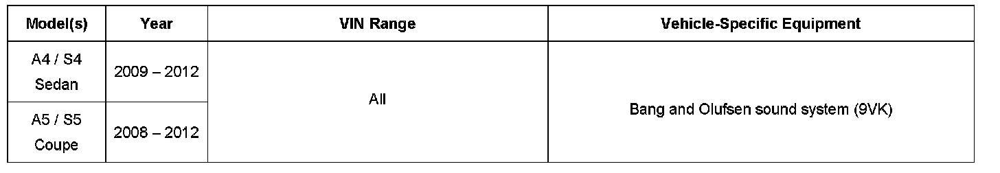 Tip: Amplifier damage as a result of window tinting is due to outside influence and is not covered by any Audi warranty.