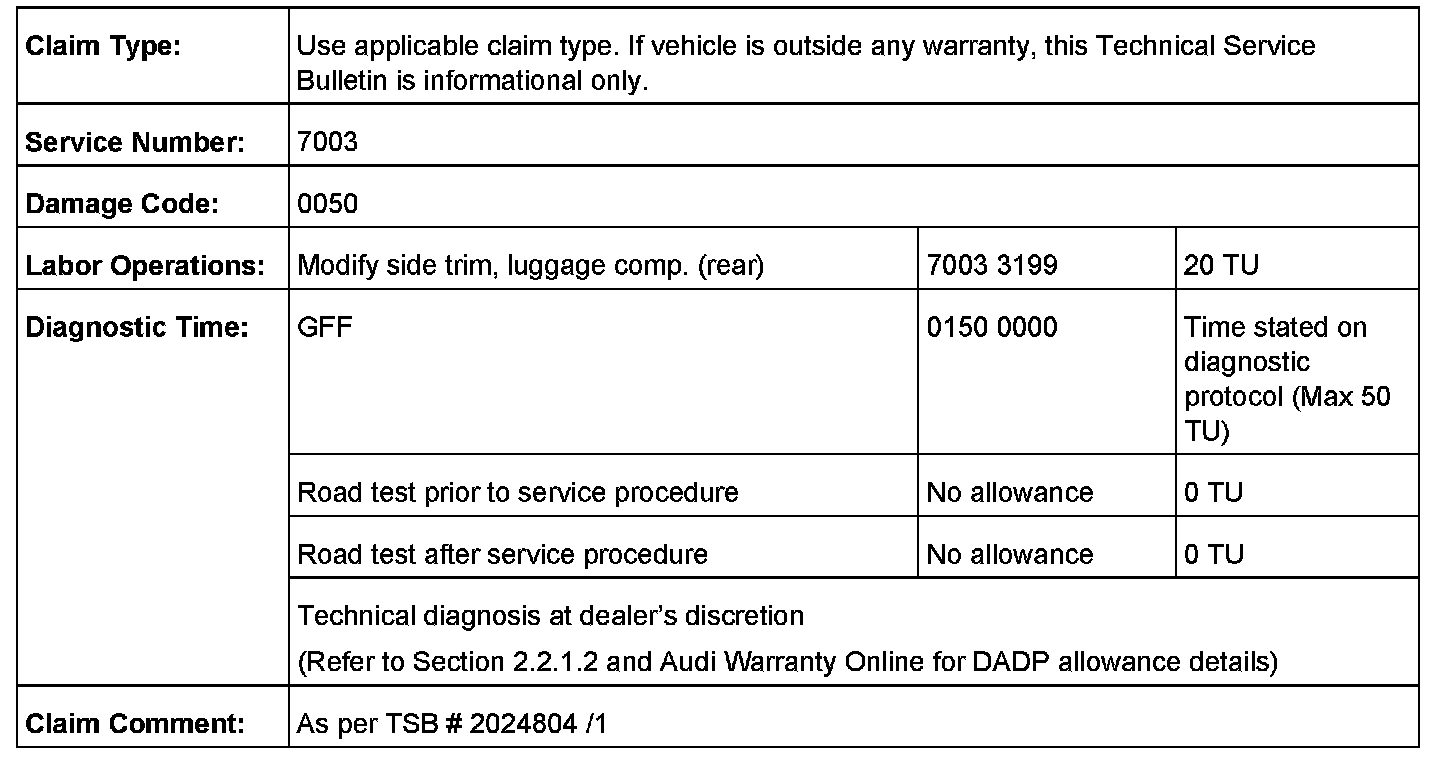 If a leak is found in the trunk compartment, claim the complete repair on the service number of the leaking (damage-causing) part ID.