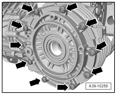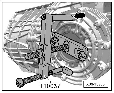 - Remove the right flange shaft by installing the (T10037) to the final drive cover - arrow -.