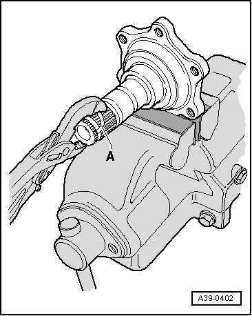 - Attach the (VW 387) in the threaded hole in the transmission housing with the bolt - A -.