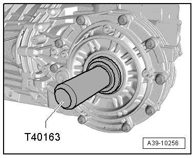 - Install the centering disk (VW 385/41) in the bearing seat for the outer race / tapered roller bearing.