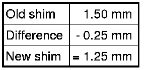 - In this example, the adjusting shim thickness is 1.25 mm.