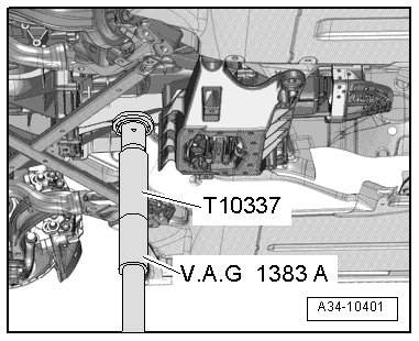 - Support the transmission using the (V.A.G 1383 A) with the (T10337) attached.