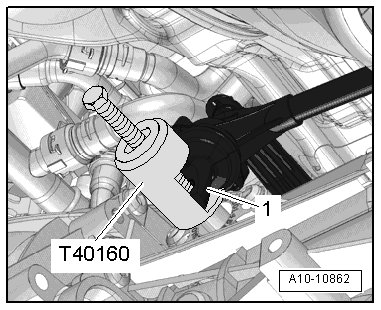 - Install the (T40160) and remove the transmission shift lever - 1 -.
