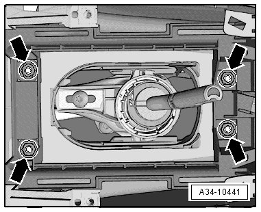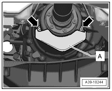 - Remove the bolts - arrows - and remove the driveshaft heat shield - A - (if equipped).