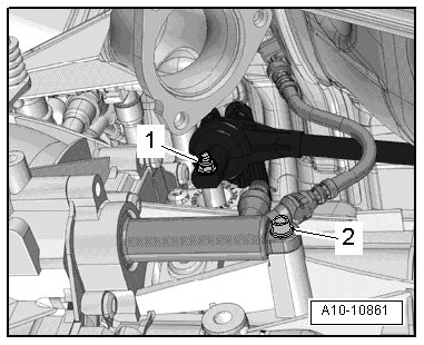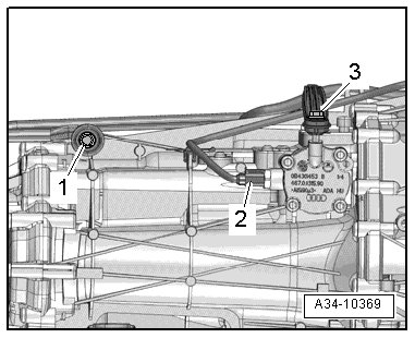 - Next, use tightening torque to tighten the bolt - 2 - from the transmission side.