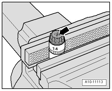 • Audi A4 from VIN 8K-9-066500, Audi A5 from VIN 8T-9-008000: The aluminum bolts may be used twice. Therefore, a chisel must be used to mark the bolts with two notches that form an "X" after they have be used the first time - arrow -.
