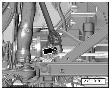 - Raise the transmission using the (V.A.G 1383 A) until dimension - a - is reached between the subframe and the body.