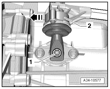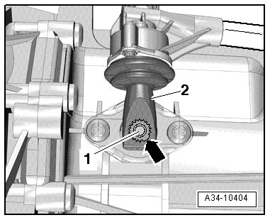 - Put in sixth gear; to do this, move the gearshift shaft - 1 -, push the gearshift lever - 2 - forward in direction of - arrow -.