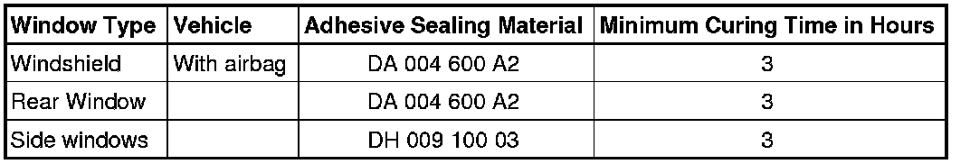 • For safety reasons, use only electrically non-conductive 2C-adhesive when installing windshield and rear window using the materials listed below.