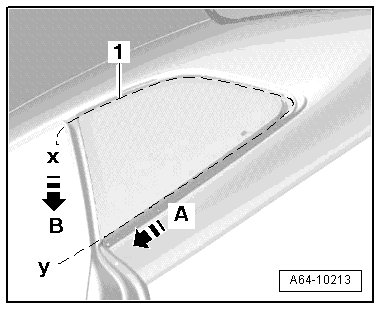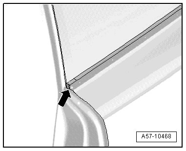 - Pull cutting wire forward in direction of - arrow A - using light sawing motions and cut through lower adhesive sealing material at side panel and at roof frame.