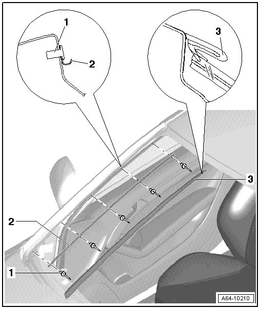 - With a new windshield - 1 -, protective piping - 2 - must be removed from molding - 3 - before installing plenum chamber cover - 4 -.