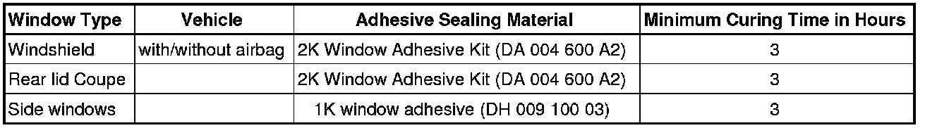 For safety reasons, use only electrically non-conductive 2C-adhesive when installing windshield and rear window using the materials listed below.