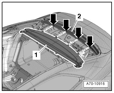 - Insert the sun shade - 1 - with the rear shelf into the rear shelf mount - 2 - - arrows -.