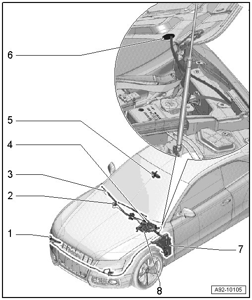• For the windshield washer fluid hose inside the hood