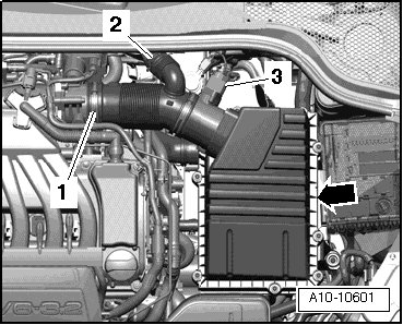 - Disconnect the electrical connector - 3 - for the mass air flow sensor (G70).