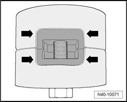 - Press out both bonded rubber bushings simultaneously, as depicted in illustration.