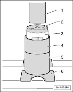- Press bonded rubber bushing -1- in until dimension -a- is achieved.