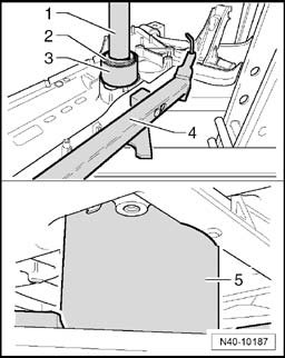 ^ Outer diameter -1- of both bonded rubber bushings may project up to 2 mm over edge in area of opening for pendulum support.