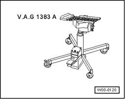 ^ Engine/transmission jack V.A.G 1383 A with universal transmission support V.A.G 1359/2
