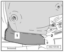 - Remove bolt -1- and remove wind deflector -2-.