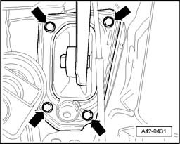 - Remove center bracket bolts -arrows- two turns.