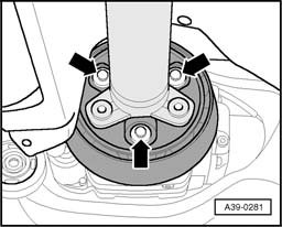 - Remove rear driveshaft tube from rear final drive with joint washer and vibration damper -arrows-.